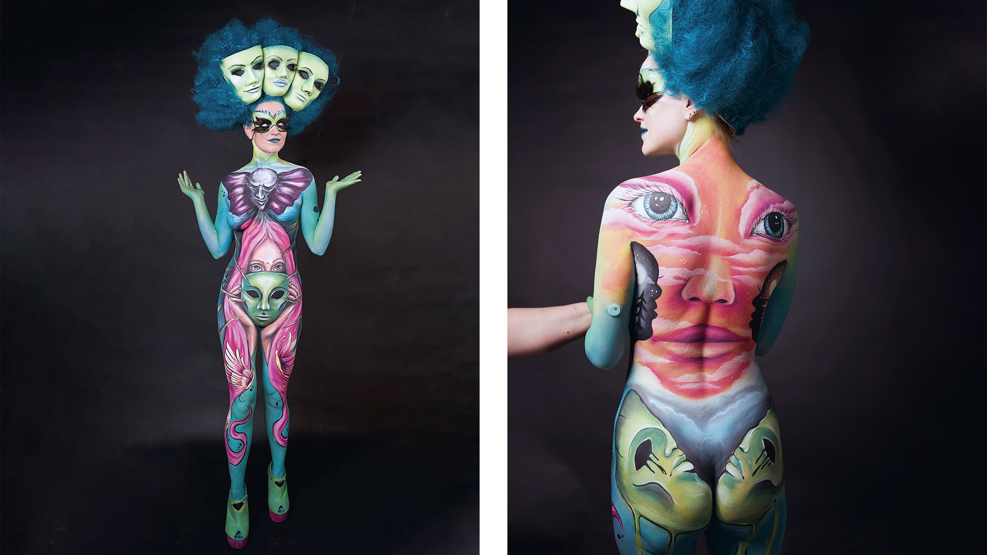Etter PEF-ung-prosjektet «Body PainT» har Regine Folkman Rossnes fortsatt med å samarbeide med makeupartist Linda Røhmen om kroppskunst. Her viser hun kroppskunst fra en konkurranse i fjor høst.